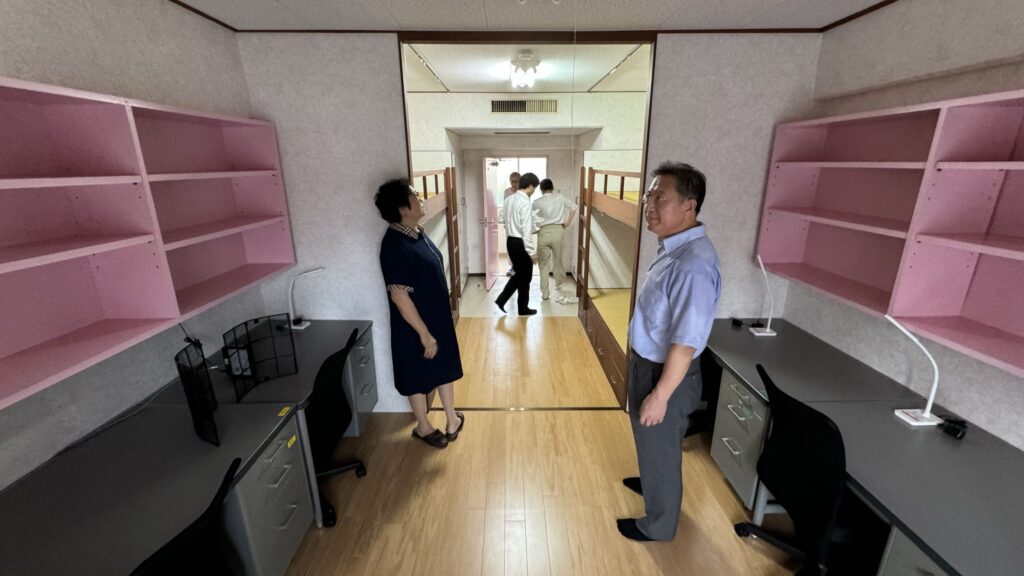 東大阪大学敬愛高等学校様においては、夏季休暇中にも関わらず、学校紹介や校舎及び宿舎案内などをしていただき、視察団も熱心に聞き入っていました。