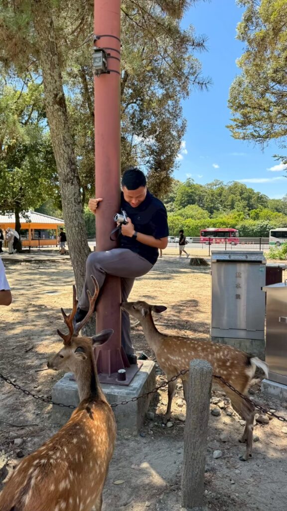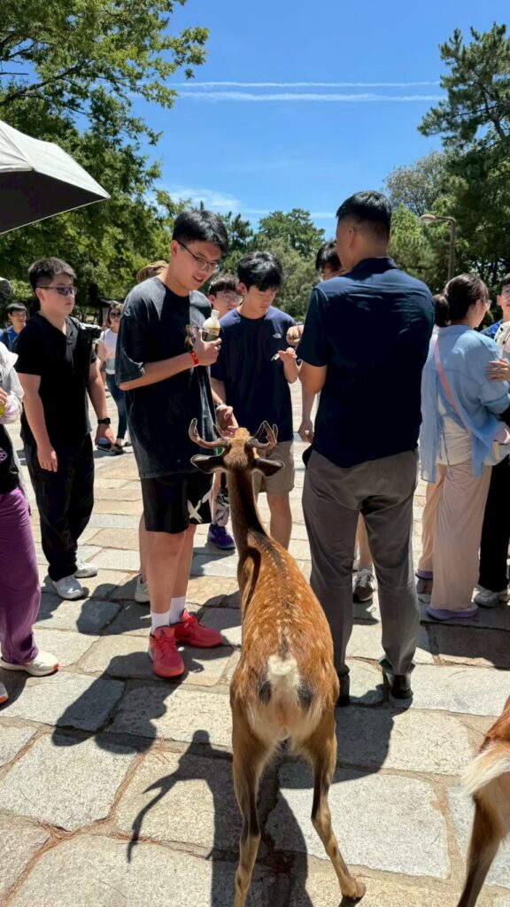 午後は奈良公園で鹿とふれあい、自然や動物との共生を肌で感じました。その後、大阪に戻り、大阪城や海遊館を巡りながら、地域の歴史や特色ある都市文化についても学びを深めました。