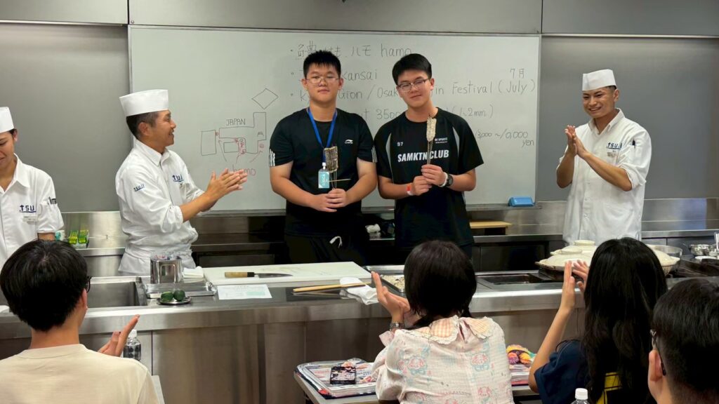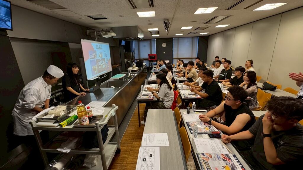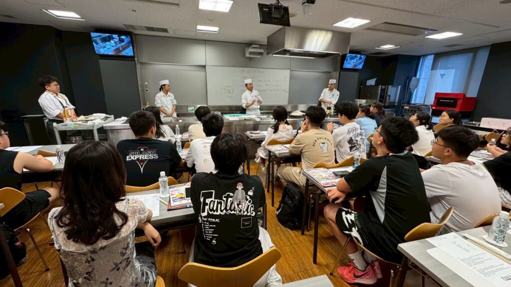 午後は辻調理師専門学校を訪問。世界的にも名高い料理学校の設備や教育現場を見学し、体験授業では、料理を作る過程の工夫や達成感を実感しました。