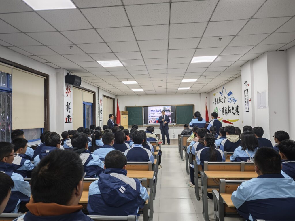 煙台市双語実験高中にて、約200名の学生達に対して茗溪学園様の学校紹介、学生からの質疑応答など、日本の教育等についての交流を行い、学生達も興味津々で聞き入っていました。